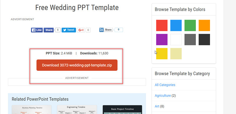 然後找到這個黃澄澄的啤酒模板來下載,圖片下方可以看到下載人數還蠻多的,喜歡的話還可以分享到社群網站給朋友。