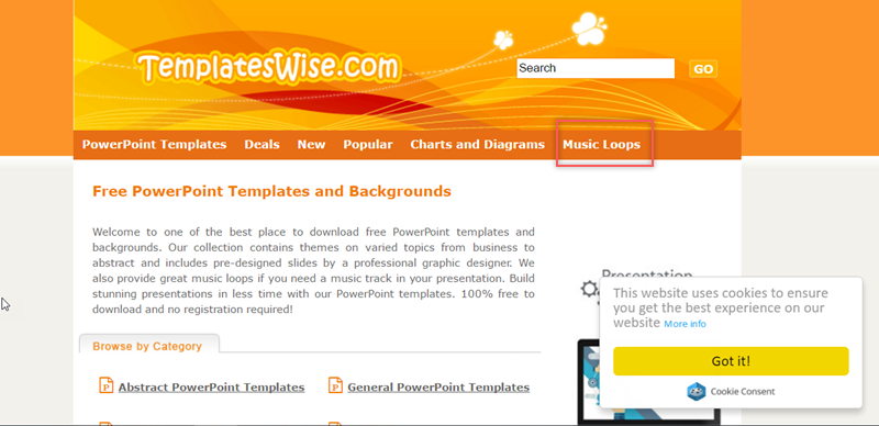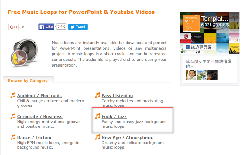 除了必備的 PPT 模板和圖表,比較特別的是這個網站還有背景音樂可以下載。
