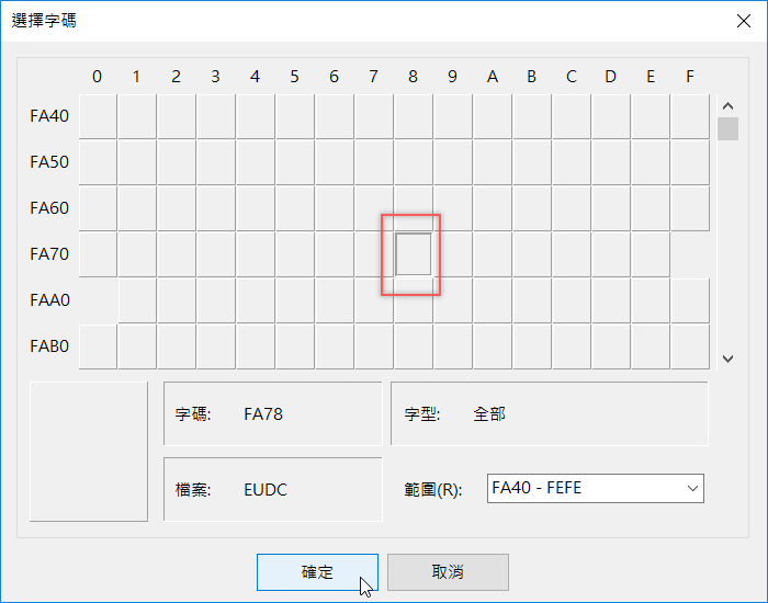 打開之後,隨便點一個空格當作字碼,然後確定。