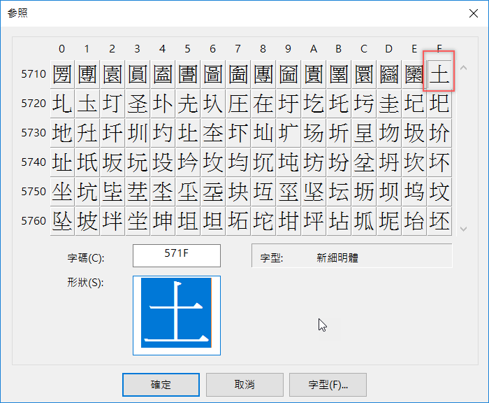 確定後回到參照的地方,到形狀這裡打出要參照的相似字,阿湯今天要造的字是四個土(真的有這個字)。