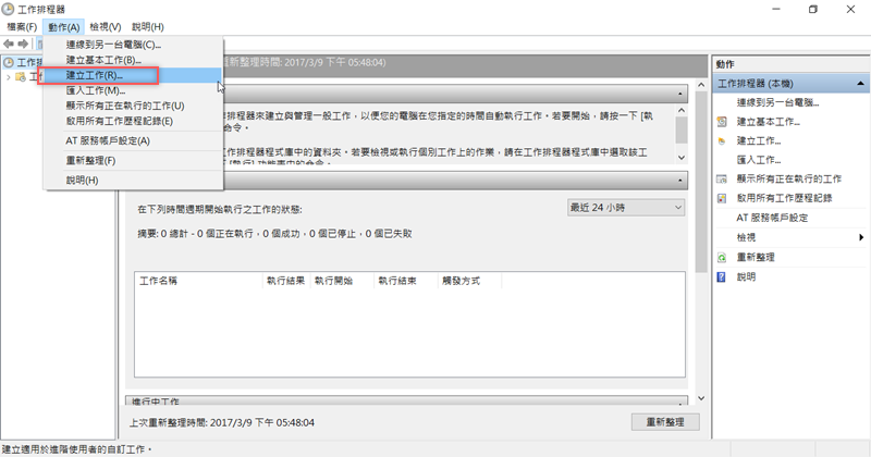 進入主畫面後,到上排點「建立工作」建立一個新的排程。