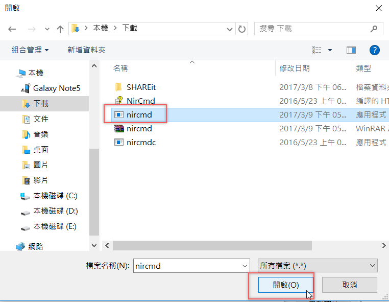 找到「nircmd」後,點選執行檔開啟。