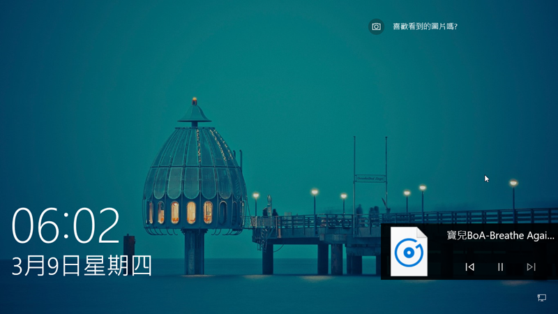 實驗一下吧,開個音樂,然後直接按快速鍵「Win」+「L」鎖定電腦,馬上跳出鎖定頁面並停止音樂,右下方還會顯示被暫停的媒體播放器內容,解除鎖定後音樂就會從暫停的地方繼續播放了。