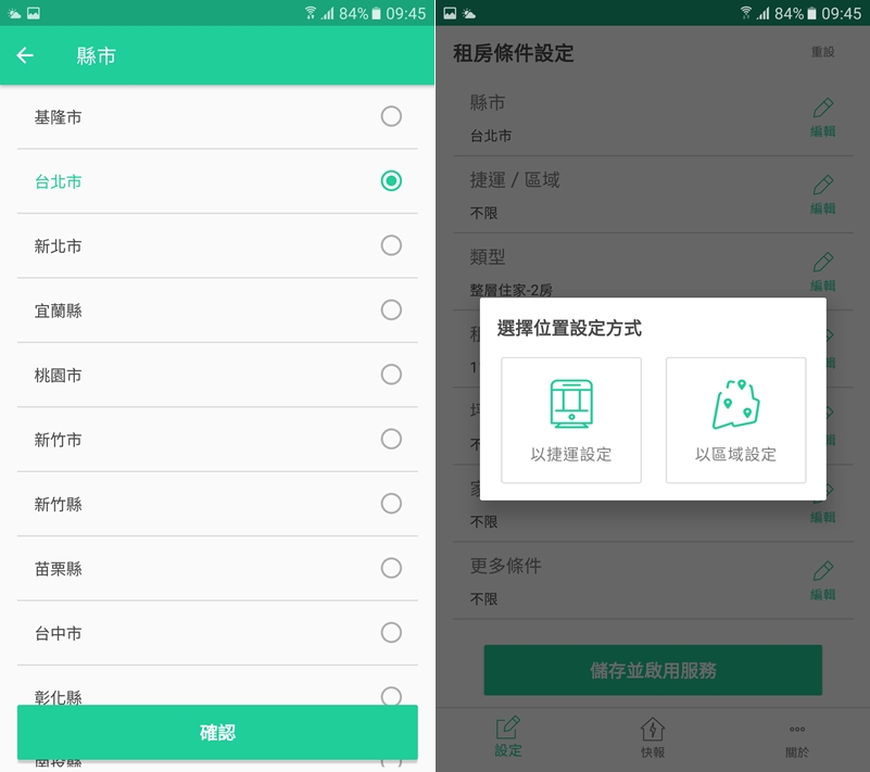 阿湯先選台北市,發現可以用行政區或捷運站來設定位置。