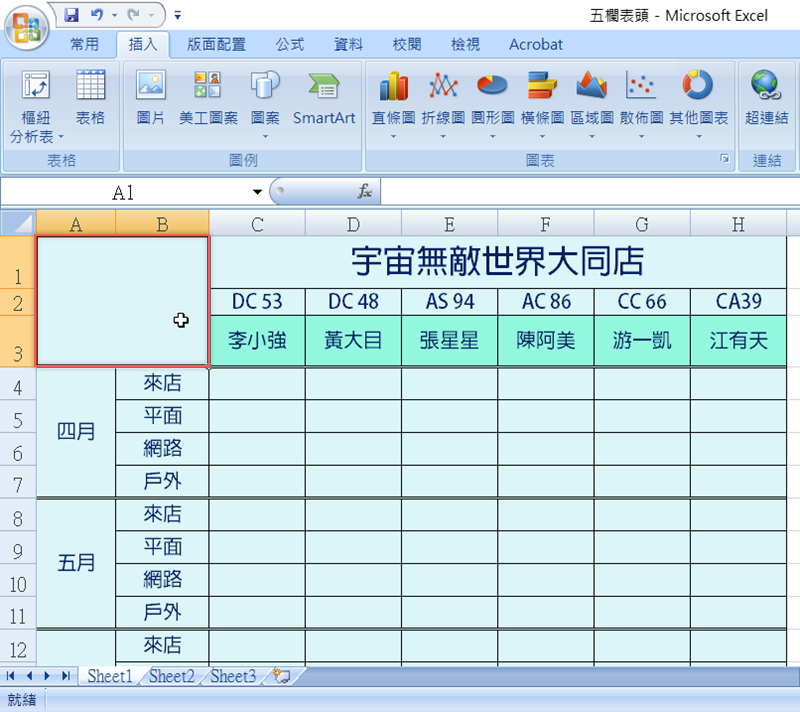 如何繪製兩欄以上的表頭