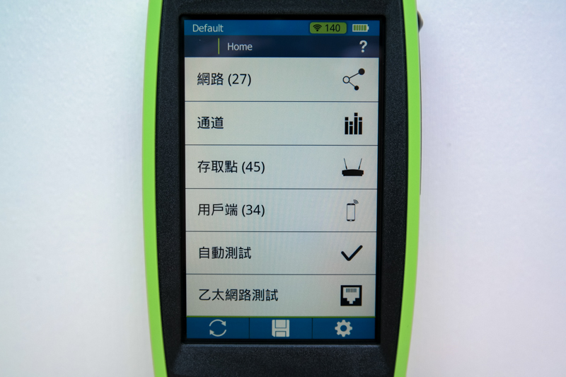 介面的部份,預設會是英文,阿湯將介面轉換為繁體中文(系統支援多國語系,常用的語系通通內建),往下將測試的一些過程分享給大家,也可以更清楚的了解 AirCheck G2 到底有多易用,介面真的是一看就懂,你只需要對 Wi-Fi 有一定的了解程度,這畫面上的所有內容應該都能輕鬆的讀懂。