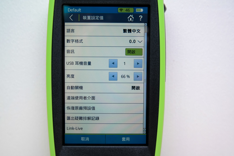 雖然是專業的測試儀,但這外型跟顏色真的也是設計的相當討喜,以前用過的測試儀普遍長的都是正經八百、四四方方(顏色更不用說就是黑色),如果你拿著這台在那走動檢測,不要近看別人還不會發現是台測試儀。