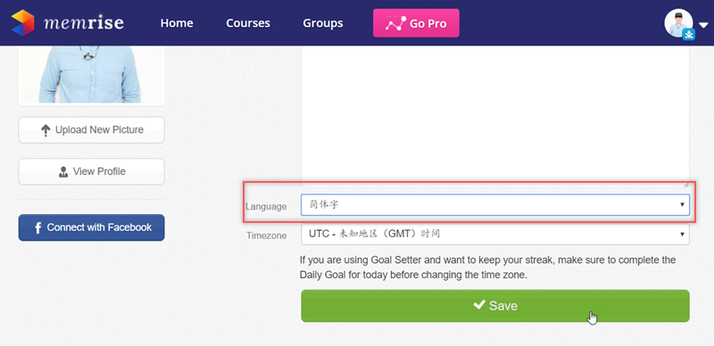 可以點進右上角更改姓名頭像,也可以把語言改成熟悉的中文(可惜只有簡體)。