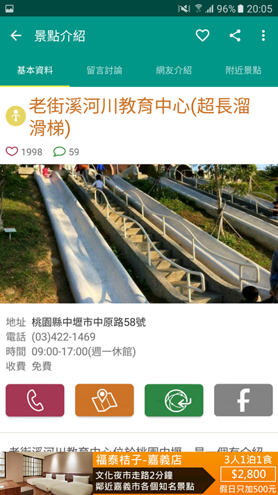 點進景點可以看到詳細資訊,這個超長溜滑梯就蠻多小朋友愛玩的,上排點進去也能看到大家的留言,或是從網友介紹那裡看一些部落格的心得分享。