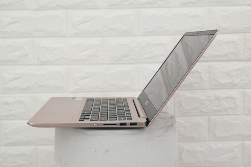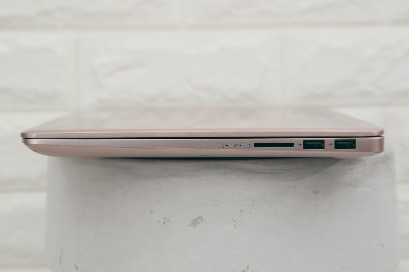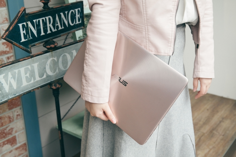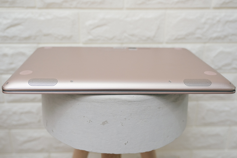 這款 ASUS ZenBook UX410 推出玫瑰金顏色真的相當吸睛,在輕薄美型之餘,規格上也有中高階筆電以上的水準並具備輕薄筆電少有的擴充性,且仔細看的話這並不是單純的玫瑰金色,看了實機會發現似乎又帶了一點銀灰色的感覺,讓整體的外觀擁有玫瑰金的色彩卻又不會太過高調,也因此更能顯示出時尚的質感跟味道,相信女性朋友們應該會非常愛不釋手。