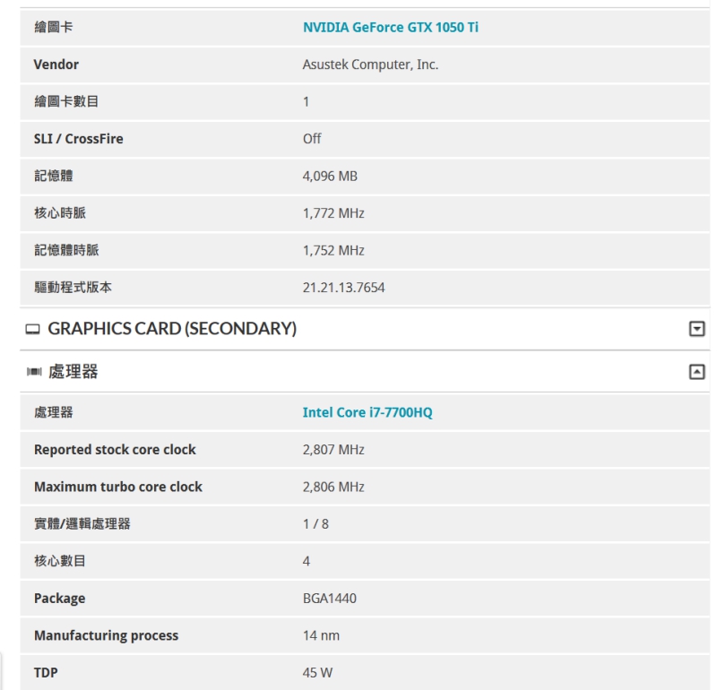 阿湯測試的這一款搭載 Windows 10 Home 作業系統,採用最新第七代 Intel®Core™ i7 處理器、NVIDIA® GeForce®GTX1050Ti / 1050 獨立顯示卡、8 GB DDR4 2133MHz SDRAM(可升級至 16GB),儲存空間的部份分別是 SATA HDD 1TB 5400RPM 以及SATA3 SSD 256GB。