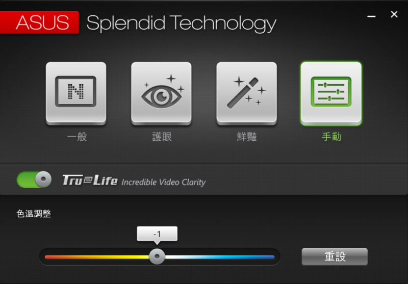 玩遊戲玩太久除了開啟 Splendid 護眼模式之外,也可以手動調整色溫來符合不同遊戲的畫面,讓影像的呈現更加有效果。