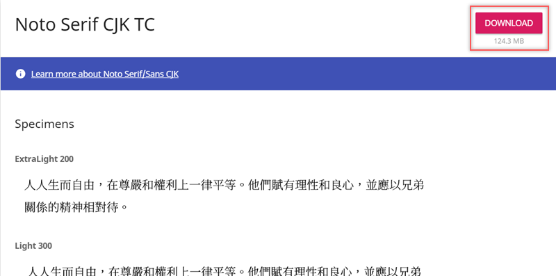 - Noto Serif CJK TC(Google)官網下載:請點我
