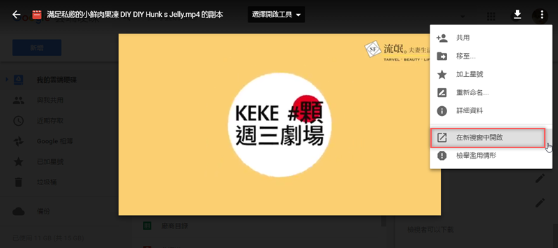 打開右上角清單圖示,選擇「在新視窗中開啟」。