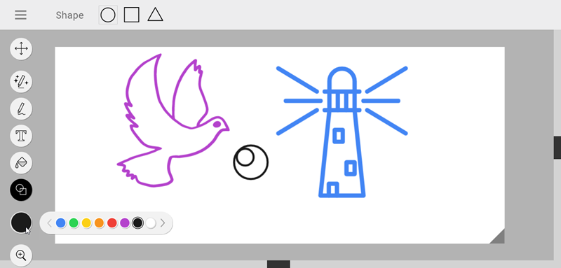 連到網站就是一張白紙,左邊功能鍵從上到下是選取、自動畫、手動畫、文字、填滿、圖型、顏色,非常簡單。