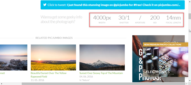 圖片下方有拍攝資訊:像素、快門、感光、焦距,很適合拿來做學習攝影的參考,不過廣告還蠻多的,而且右下角那一塊關不掉很討厭。