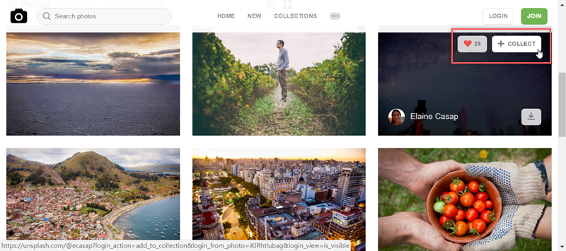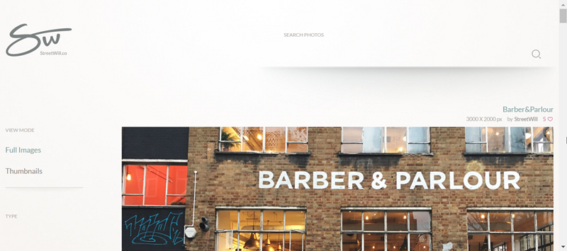 預設也是大張圖片的瀏覽方式,可以在左排功能切換成縮圖模式,從圖片上就能看到尺寸、拍攝者跟喜愛人數,點圖就可以按讚或下載,簡單一個頁面搞定。