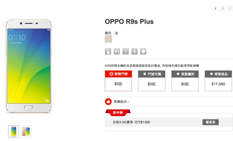 上面阿湯分享的 1,399 元的資費方案,很推薦大家可以順便搭配手機一起申辦,而且 1,399 元資費方案有很多好用的 0 元手機可以選擇,像是 OPPO R9s Plus、小米 5s Plus 等,都是很不錯的選擇,OPPO R9s Plus 阿湯先前也有分享過評測,相機很厲害,特別是錄影手持超穩定(
