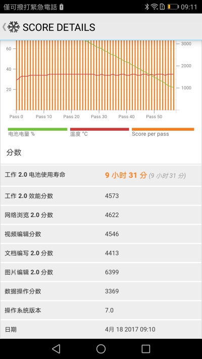 最後同樣透過 PCMark 測試續航能力得到 9 小時 31 分,以中階機種來說,是相當不錯的續航能力。