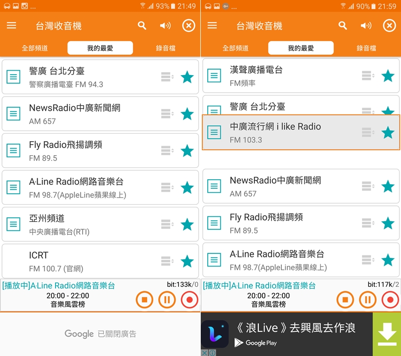一樣可以點頻道最右邊的星星加最愛,收藏在最愛區域更方便使用,長按電台名單就可以上下移動順序。