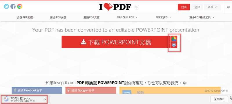 然後點「轉換為 POWERPOINT 文檔」就會開始轉檔。