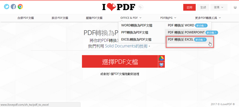 網站首頁就是所有功能與簡介,想用哪個就點進去,也可以從最上排選擇,來試試「PDF 轉 POWERPOINT」。