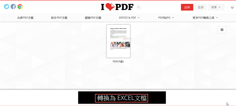 再來示範個大家應該比較少用的功能,從上排選「PDF 轉換至 EXCEL」。