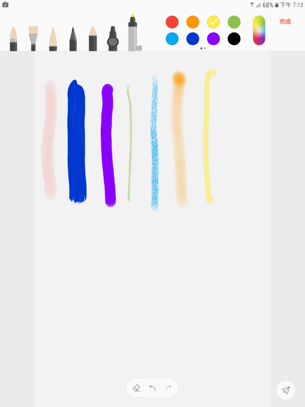 內建的 Samsung Note 筆記 APP,除了一般記事、書寫記事之外,其中的繪圖功能富涵多種筆刷,包括特殊筆觸水彩、油彩、毛筆、蠟筆、螢光筆等,想要怎麼畫都沒問題。