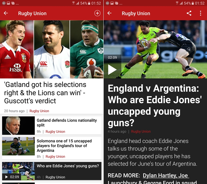 原來是橄欖球的相關新聞,有純文字加圖片的,也有搭配影片的,標題、內容、時間、撰寫者都很詳細,可能比直接觀看 BBC 還容易記憶。