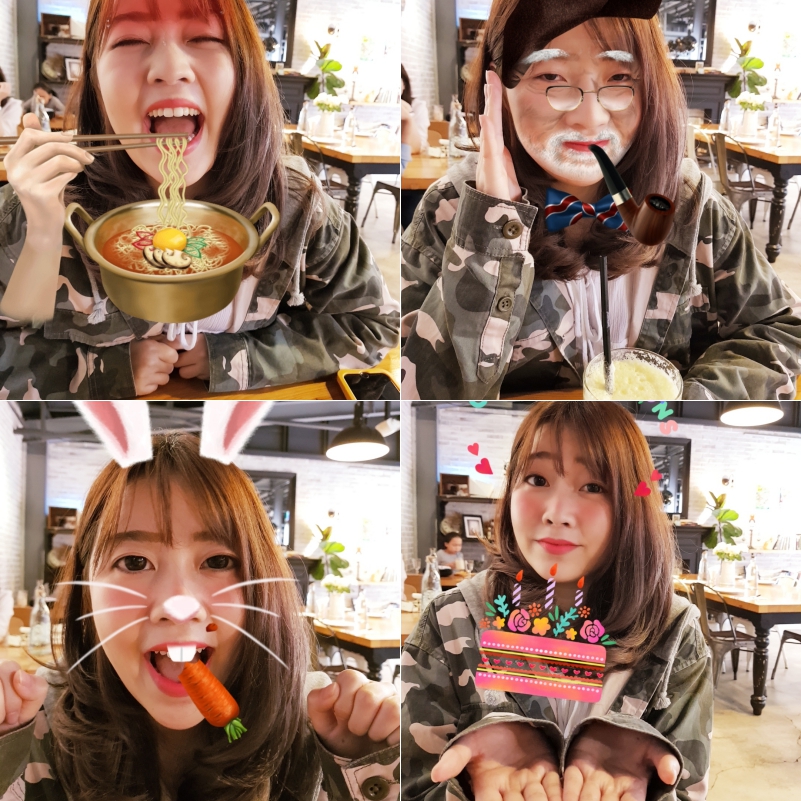 這次在濾鏡的部份除了各種色調及風格,更加入了印章效果以及很多可愛的動態特效貼圖,而這些動態特效貼圖不僅可以用在拍照上,也能用在錄製影片,自動辨識人臉,瞬間變的超萌。