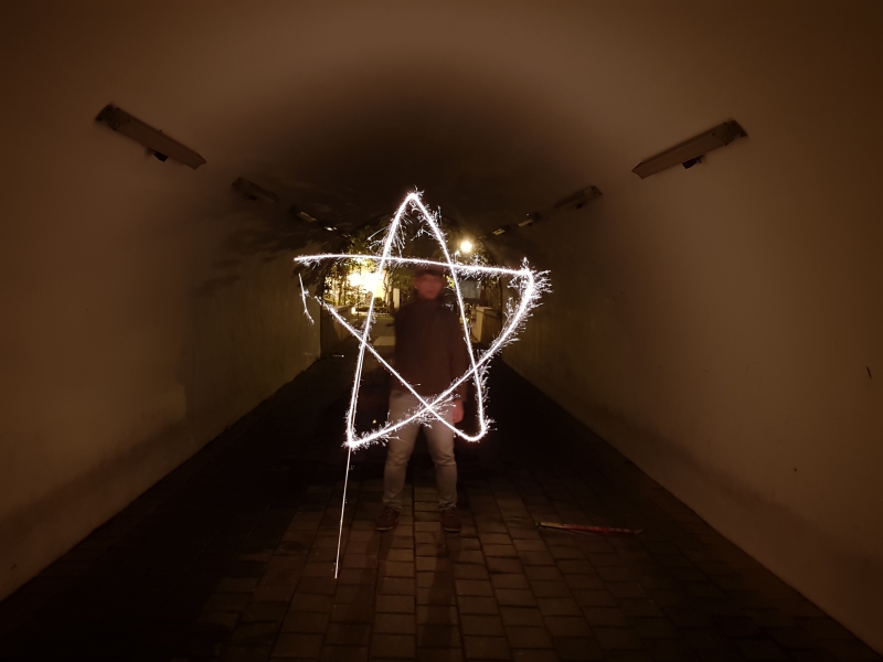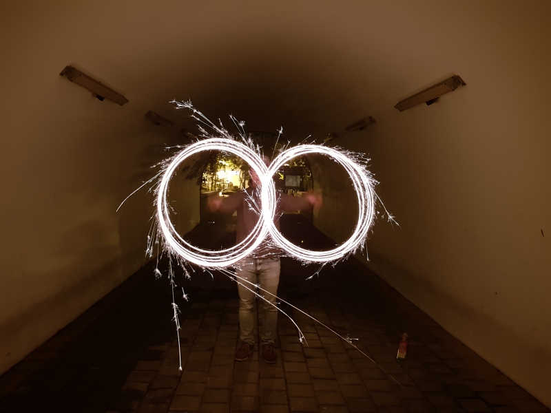 至於專業模式下,除了用來拍攝夜景之外,拿來玩光影是最棒的,手機用的腳架其實幾百塊就很夠用,也很輕便好攜帶,大家有去買仙女棒的話,不妨也可以玩看看,奇異博士的穿越法就是這樣練出來的(誤)。
