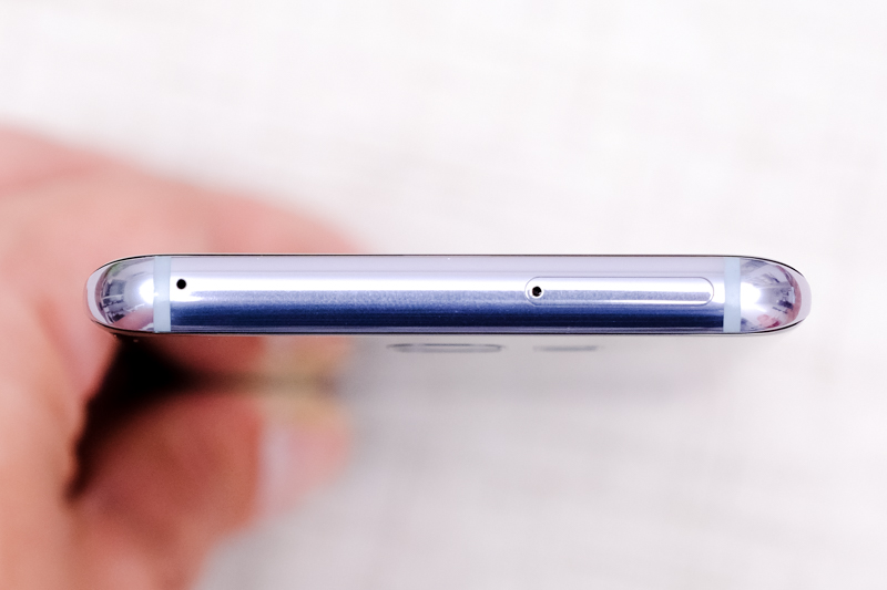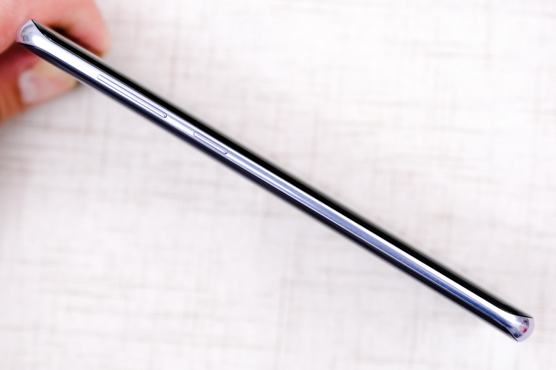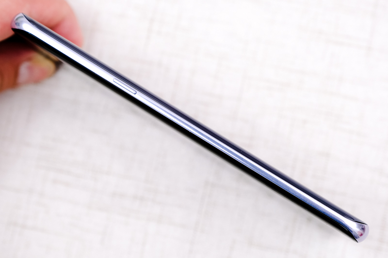 側邊為電源鍵,Galaxy S8+ 厚度為 8.1mm,不過由於前後曲面設計的關係,握在手上會覺得大約是 7mm 厚度的感覺。