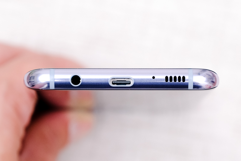 下方為 3.5mm 標準耳機孔、USB Type-C 連接埠、降噪麥克風以及喇叭,這次在音源的部份支援 UHQ Audio 32 bit,因此就算沒接耳機,同樣能享受到高音質的影音體驗。