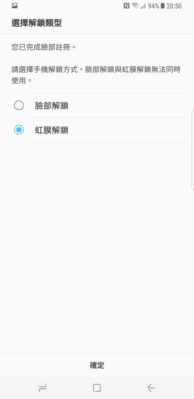 另外 Galaxy S8/S8+ 還有支援臉部辨識,不過臉部辨識與虹膜辨識只能擇其一,大家可以依使用習慣來選擇。