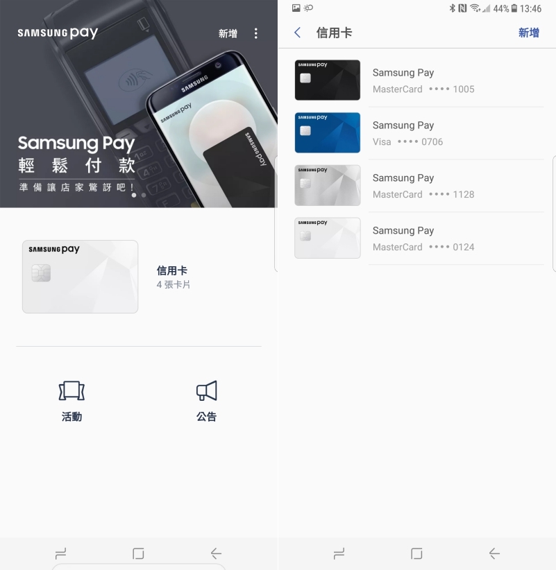 Samsung Pay 的使用方式很簡單,只要事先將信用卡加入 APP 裡,之後只要開啟 Samsung Pay 選擇要使用的信用卡。