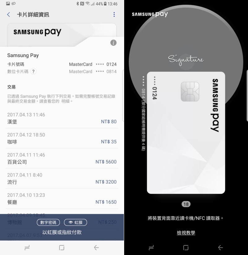 行動支付在台灣算是發展比較慢,但又是相當方便的一個支付方式,只要透過手機嗶嗶就可以完成刷卡的動作,驗證方式是透過指紋或虹膜辨識,安全性非常高且便利,前陣子 APPLE Pay 雖然在台灣已經先行,不過僅能支援感應式的刷卡機,有很多地方不支援;而 Samsung Pay 除了感應式刷卡機之外,還能在傳統的 MST 磁條式刷卡機上使用,可以說幾乎是全通用了,因為可以刷卡的店家一定會有 MST 刷卡機,但不一定會有感應式的(目前還沒完全普及),帥氣的拿出手機嗶嗶付款爽度真的大不同。