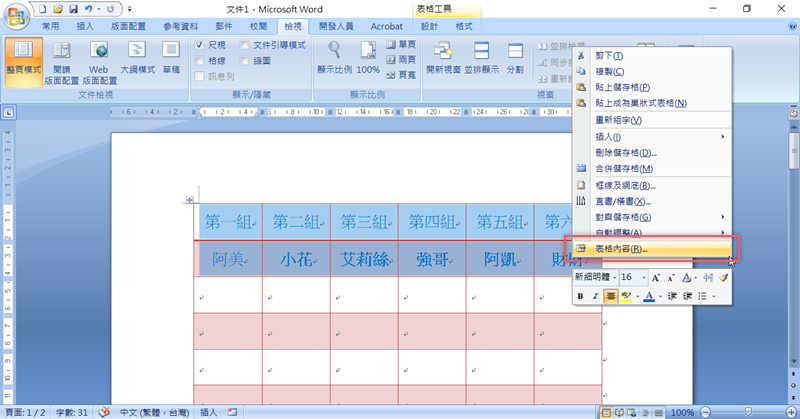 假設要設定的是這份表格,可以看到除了文字與格線,其他顏色也設計好了。