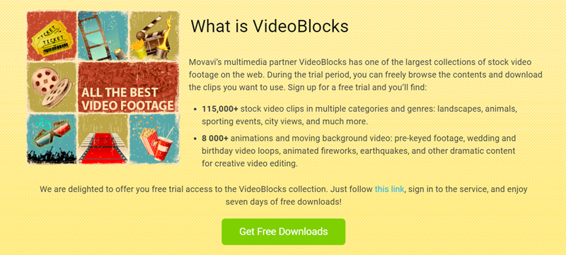 會連到網站上關於影片素材、動態背景與效果模板的介紹,包括 115,000 以上的高清視頻、After Effects 模板等,並每日更新,七天試用期內可免費下載,如果升級付費版當然功能更多,下載的素材還能自由運用,算是相當強大的資料庫,常做影片的朋友可以考慮看看。