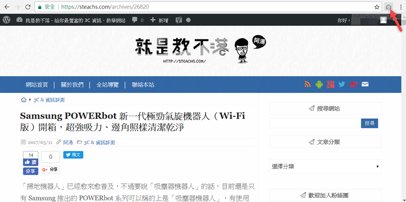 然後就會看到右上角有一個相機的圖示,打開要擷取的網頁,點下去。
