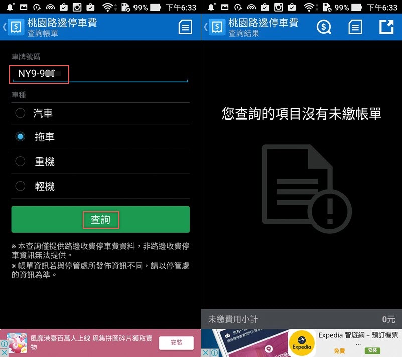 交通違規這裡就真的是查拖吊費的地方,輸入個人資料與驗證碼就知道有沒有被開的紅單還沒繳費,但這項功能和電費、亞太電信費目前還不能設定自動追蹤,要自己注意。
