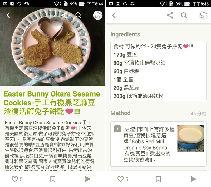 點進去可以看到更多細節,像這個復活節兔子餅乾,作者寫了蠻多介紹,要準備食材與份量都寫得很清楚,後面還分步驟並搭配圖片說明。