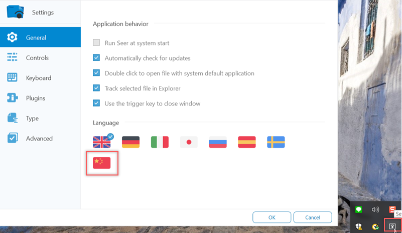 下載完螢幕右下角會出現圖示,打開設置,可以將語言改成簡體中文版。
