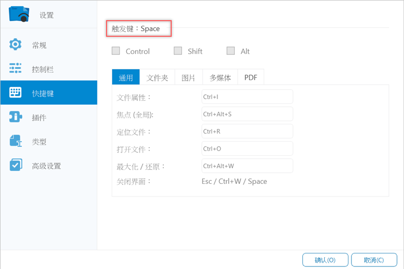 再來看一下快速鍵的部分,預設的觸發鍵就是空白鍵「Space」,也可自行調整。