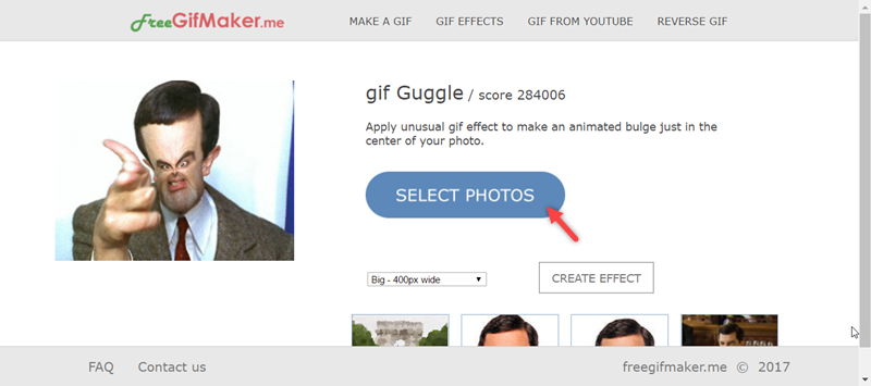 選一個來玩吧,點「SELECT PHOTOS」選一張電腦裡的相片,再點「CREATE EFFECT」即可。