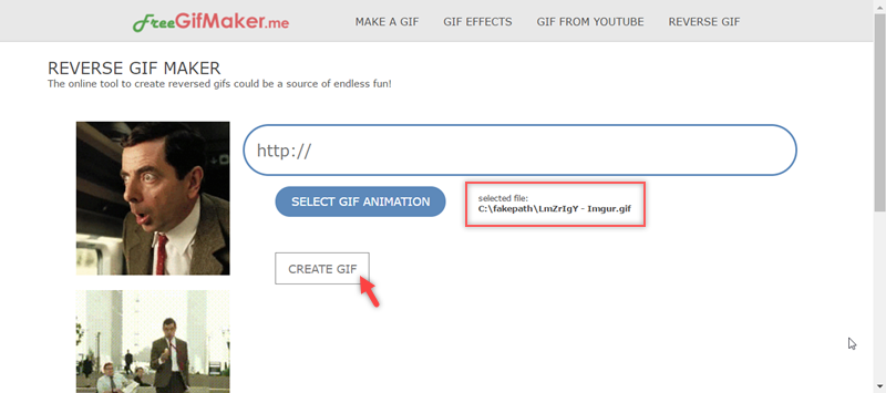 最後這個是將已經做好的 GIF 圖變成反向的,例如原本是向前走變成後退,一樣上傳後點「CREATE GIF」。