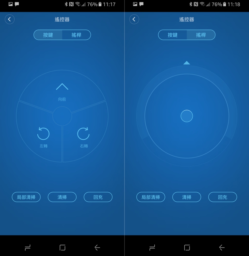 基本操作就是返回充電站、開始/停止清潔以及控制吸力強度,分別有四段(安靜、標準、強力及全速)。