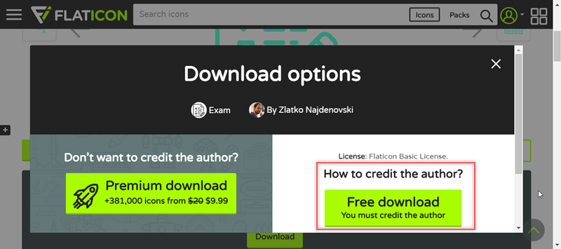 如果選右邊的免費下載,在自己網站公開使用必須標示作者。