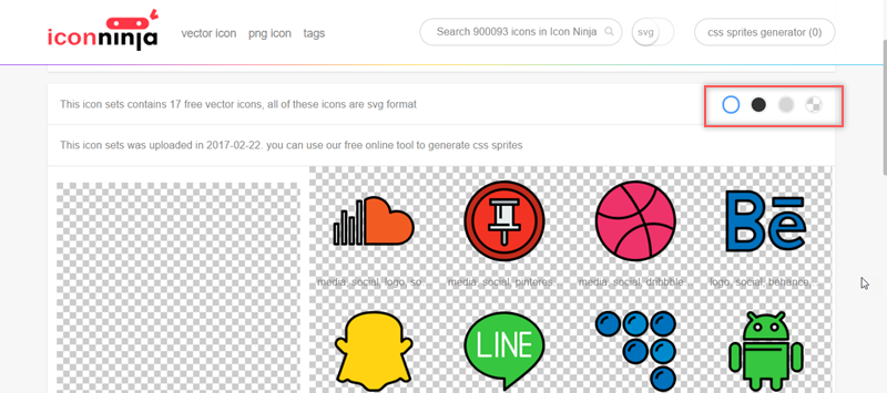 往下看到有 PNG、SVG、EPS、PSD 和 Base 64 可下載,還可選擇顏色和尺寸。