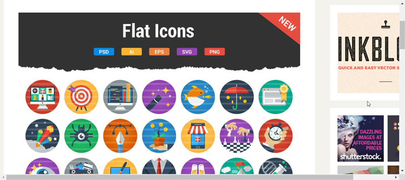 看這 20 個色彩繽紛的平面圖標,上面標示有五種檔案可下載,不是只有 PSD。