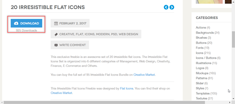 但沒有檔案格式可選,阿湯就直接點「DOWNLOAD」,下載完解壓縮發現只有 PSD 檔,可能阿湯誤會了,到右邊的分類看看。